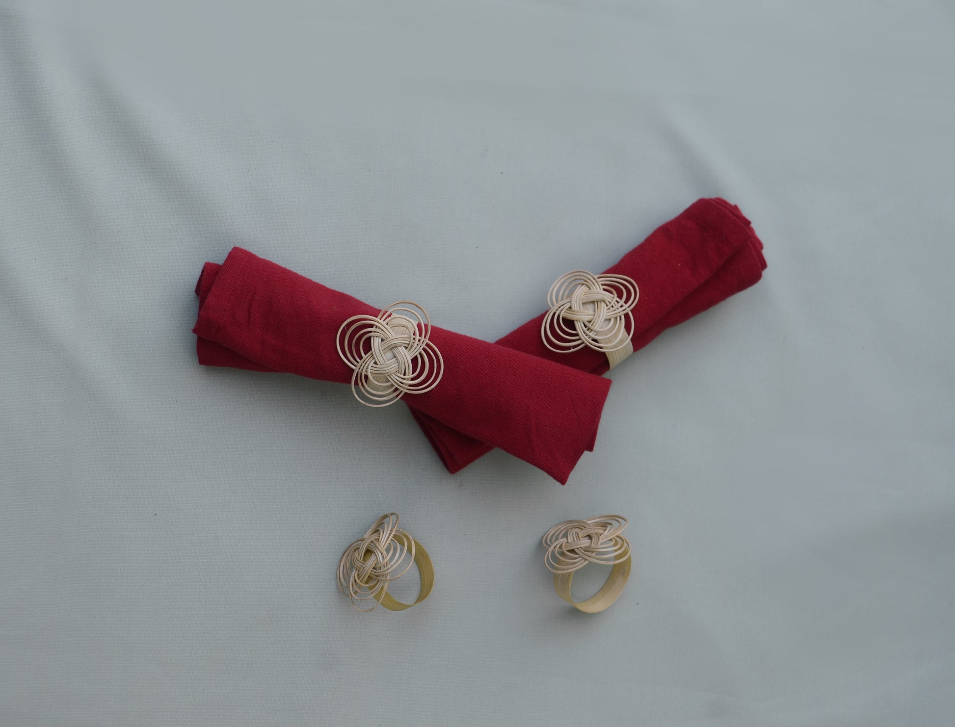 Elevate your dining experience with these handmade braided bamboo napkin rings. The braided pattern adds a touch of texture and is intricately crafted from bamboo by skilled artisans, ensuring a unique and high-quality addition to your table setting. Whether you're hosting a casual brunch or an elegant dinner party, these napkin rings seamlessly complement any occasion.