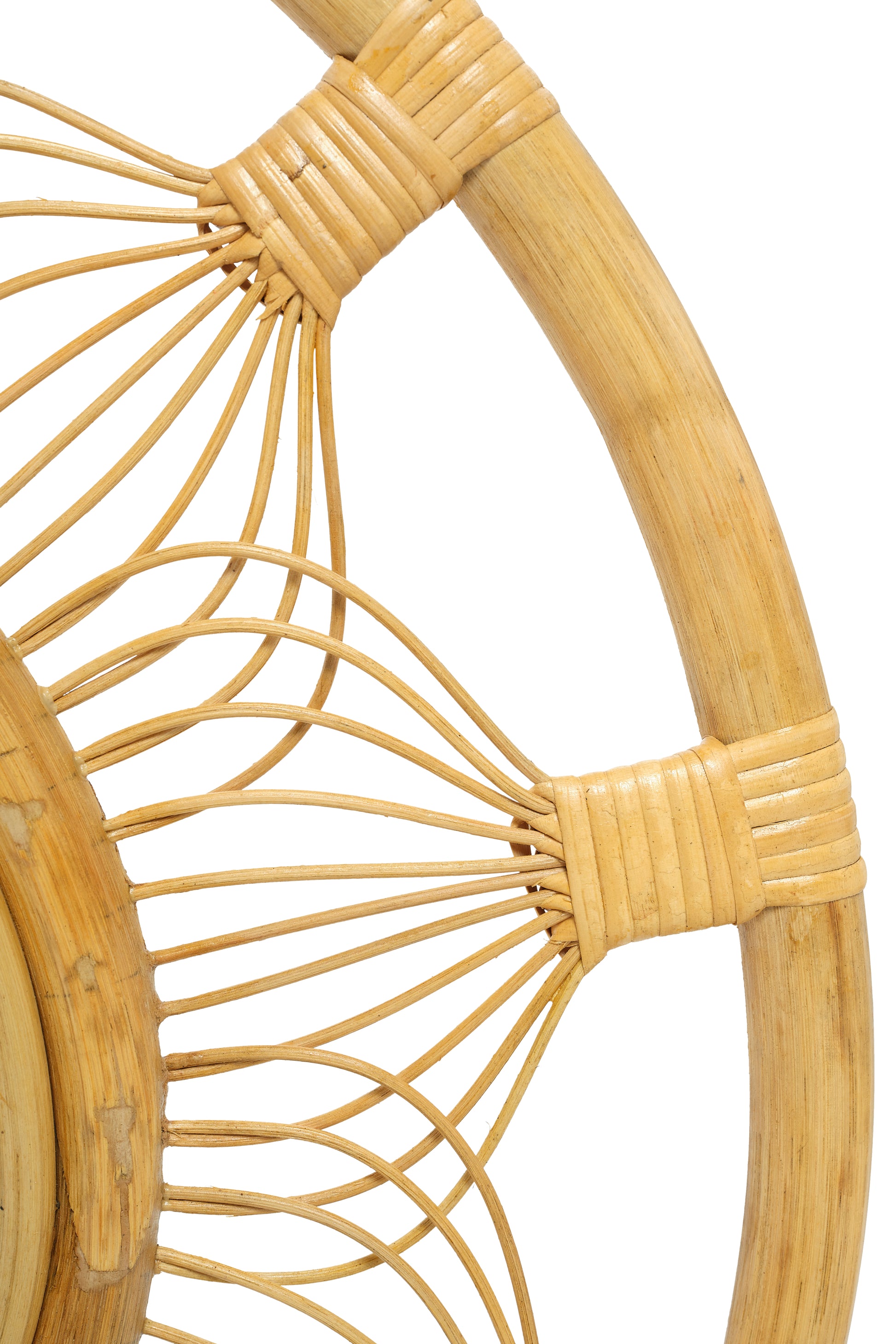 Add this unique handmade rattan hanging mirror to elevate any room in your home. Crafted with care and attention to detail, the round mirror seamlessly blends the warmth of nature with the elegance of artisan craftsmanship. This natural wall decor adds a touch of texture and minimalistic boho style to your space and serves as a decorative accent piece, perfect for your living room, bedroom, bathroom, and kid's room.